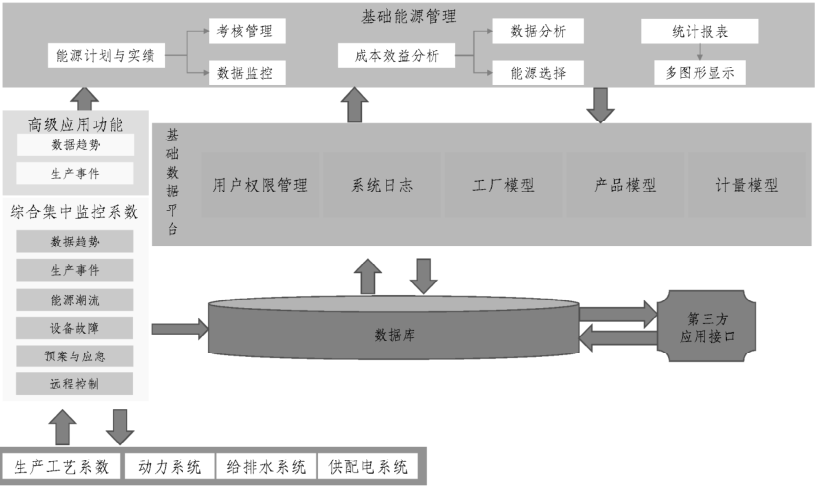在未來20年左右的時間里,中國將進入工業化中期發展階段,作為制造業與建筑行業重要的工程結構材料,鋼材的需求總量還將進一步增長。鋼鐵工業是國民經濟的基礎產業,在中國的經濟生活中占有重要地位。鋼鐵工業又是典型的資源消耗型產業,對原料、燃料以及能源動力的消耗十分巨大。以前的節能管理方法主要是核算動力成本、滴漏跑冒管理、指標考核等,這些方法達到了一定的成效,但是要提高管理方法的潛力,滿足市場經濟的需求,應該建立新的管理平臺,對能源使用進行監管,節能降耗,降低經濟成本。本著這一目標,經過反復的討論和調查,結合現代化的科學管理手段,以先進的軟件運算為依托,設計了一套擁有能源計劃、能源實績、能源成本、能源預測、能源平衡、能源調度、能源設備和能源質量等監控和管理功能的能源管理系統。